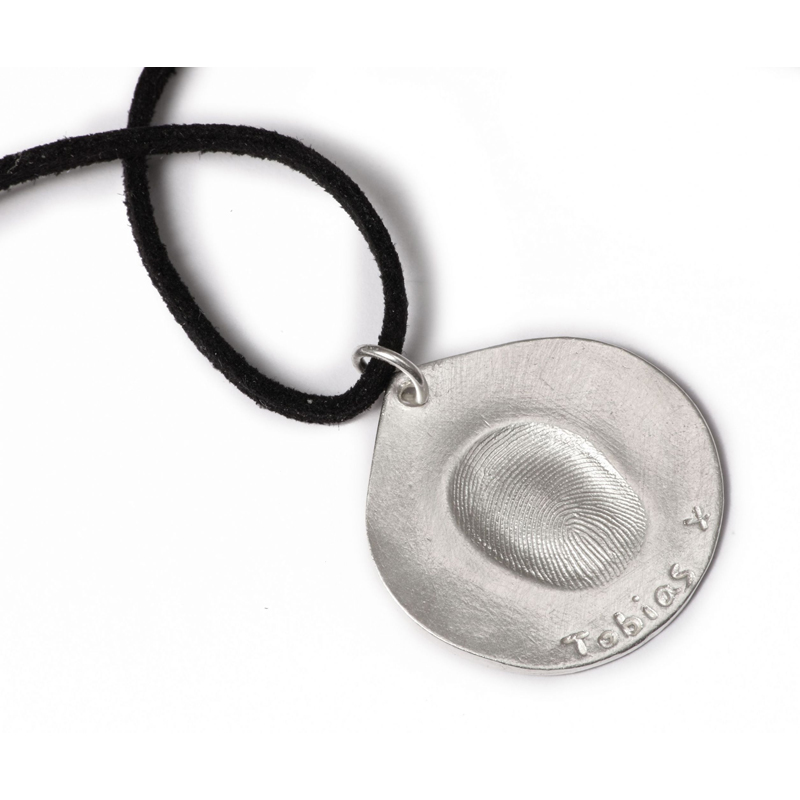 ‘Dog Tags’ are pendants for men and are perfect for the men in your life who cannot, or do not wear cufflinks, for work as they will always have their precious prints close to them. They are all supplied on a 20” black faux suede leather finished with sterling silver clasp as standard. If you would like a longer length, or an upgrade to a chain, please select in the top drop down menu.