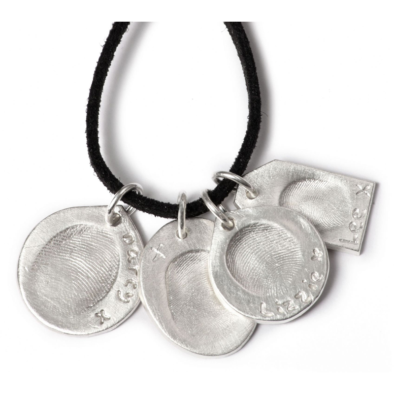 ‘Dog Tags’ are pendants for men and are perfect for the men in your life who cannot, or do not wear cufflinks, for work as they will always have their precious prints close to them. They are all supplied on a 20” black faux suede leather finished with sterling silver clasp as standard. If you would like a longer length, or an upgrade to a chain, please select in the top drop down menu.