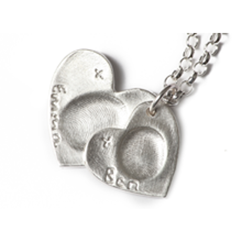 Double Pendants are great for two children or even just one child (‘fingerprint and x’ on top charm and name on bottom)!