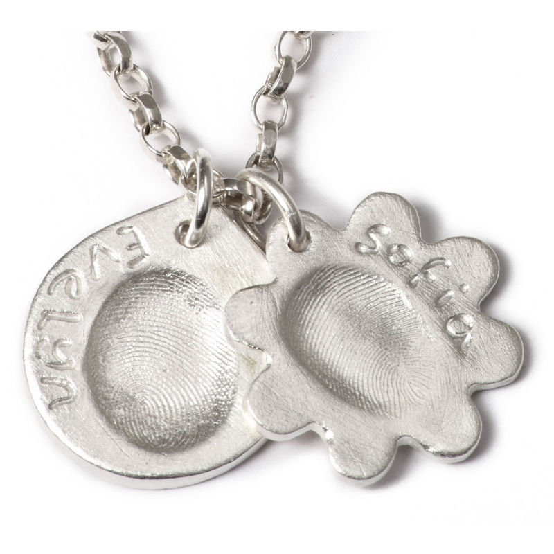 Double Pendants are great for two children or even just one child (‘fingerprint and x’ on top charm and name on bottom)!
