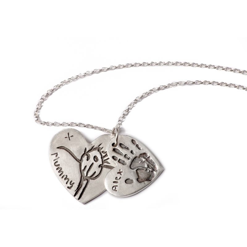 Double Pendants are great for two children or even just one child (‘fingerprint and x’ on top charm and name on bottom)!